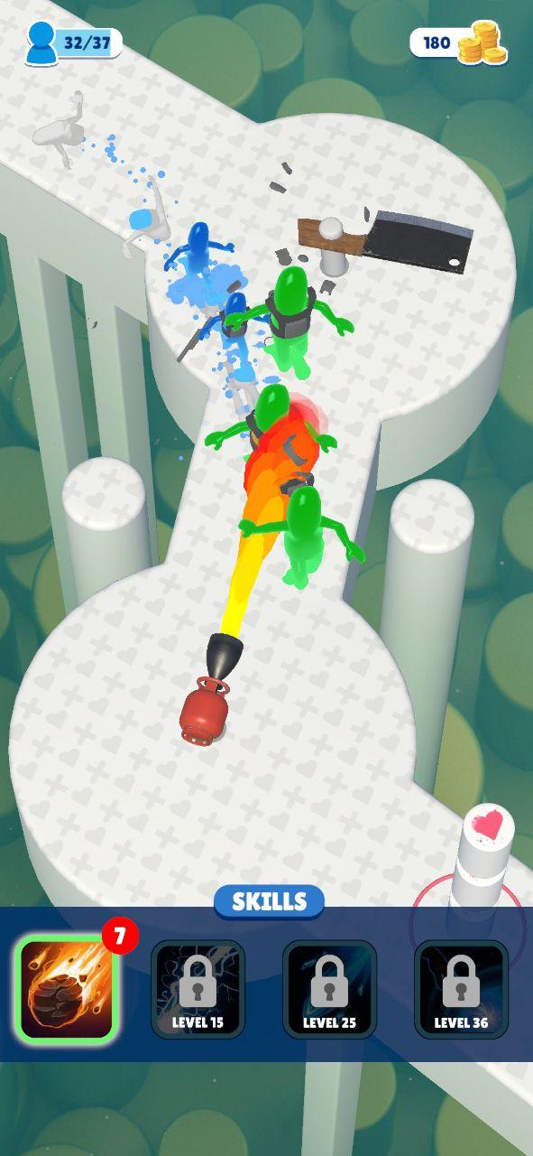 1、玩家在人群拥挤3D游戏中需要不断的奔跑获得更多同伴,自己的队伍越大自己的实力就越大;