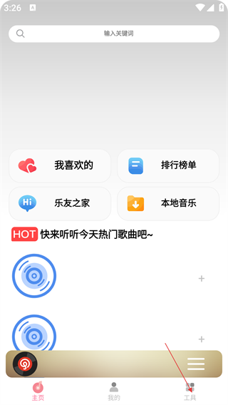 1、进入软件主页后,点击底部【工具】按钮,可进入功能设置界面,访问各类辅助功能。