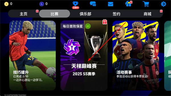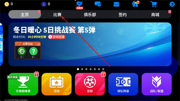 1、在游戏主界面点击顶部比赛选项,进入比赛页面。
