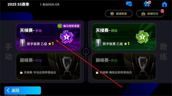 3、在赛事界面中,选择天梯赛-手动”,进入该赛事的详情页面。