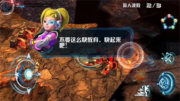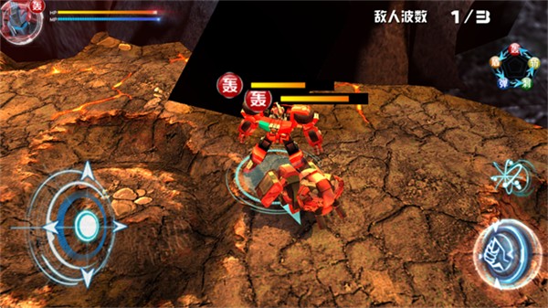 2、通过左侧虚拟摇杆控制机甲移动,调整位置靠近敌人。