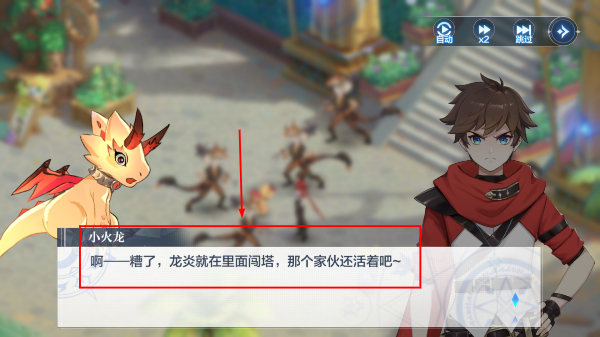 3、根据【小火龙】提示,得知【龙炎珠】在闻塔且目标存活,需准备前往闻塔开展探索。