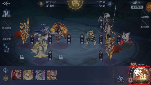 4、阵容布置完毕后,点击右下角【挑战】按钮进入战斗,观察双方战力变化适时调整策略。