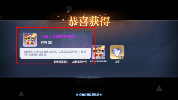 4、完成指定任务获得【我是大收藏家徽章碎片】,积累碎片合成徽章提升收藏等级解锁更多奖励。