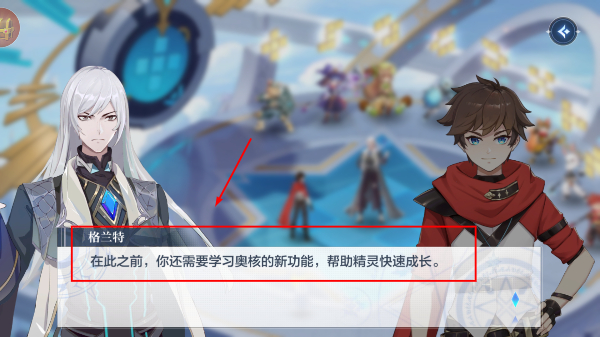 1、跟随【格兰特】指引学习奥核新功能,可助力精灵快速成长,提升精灵养成的效率与进度。
