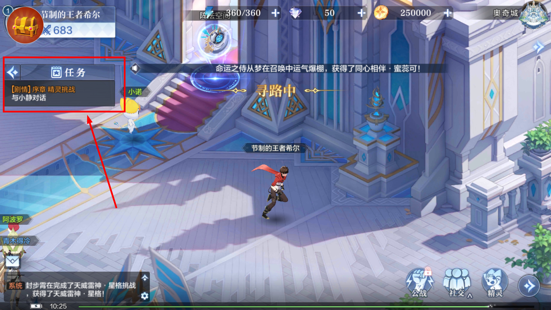 1、根据任务指引找到【小静】对话,推进【剧情】【序章】的【精灵挑战】任务,完成当前互动环节。