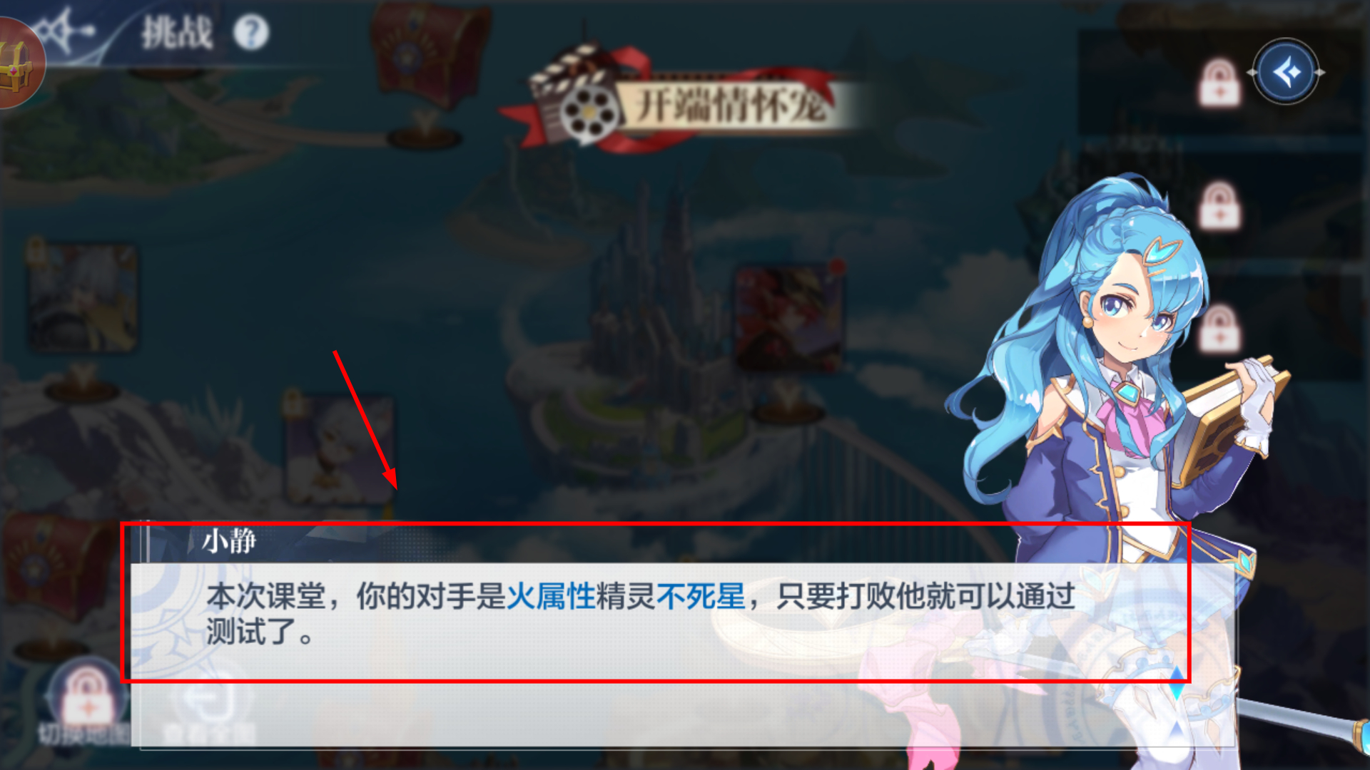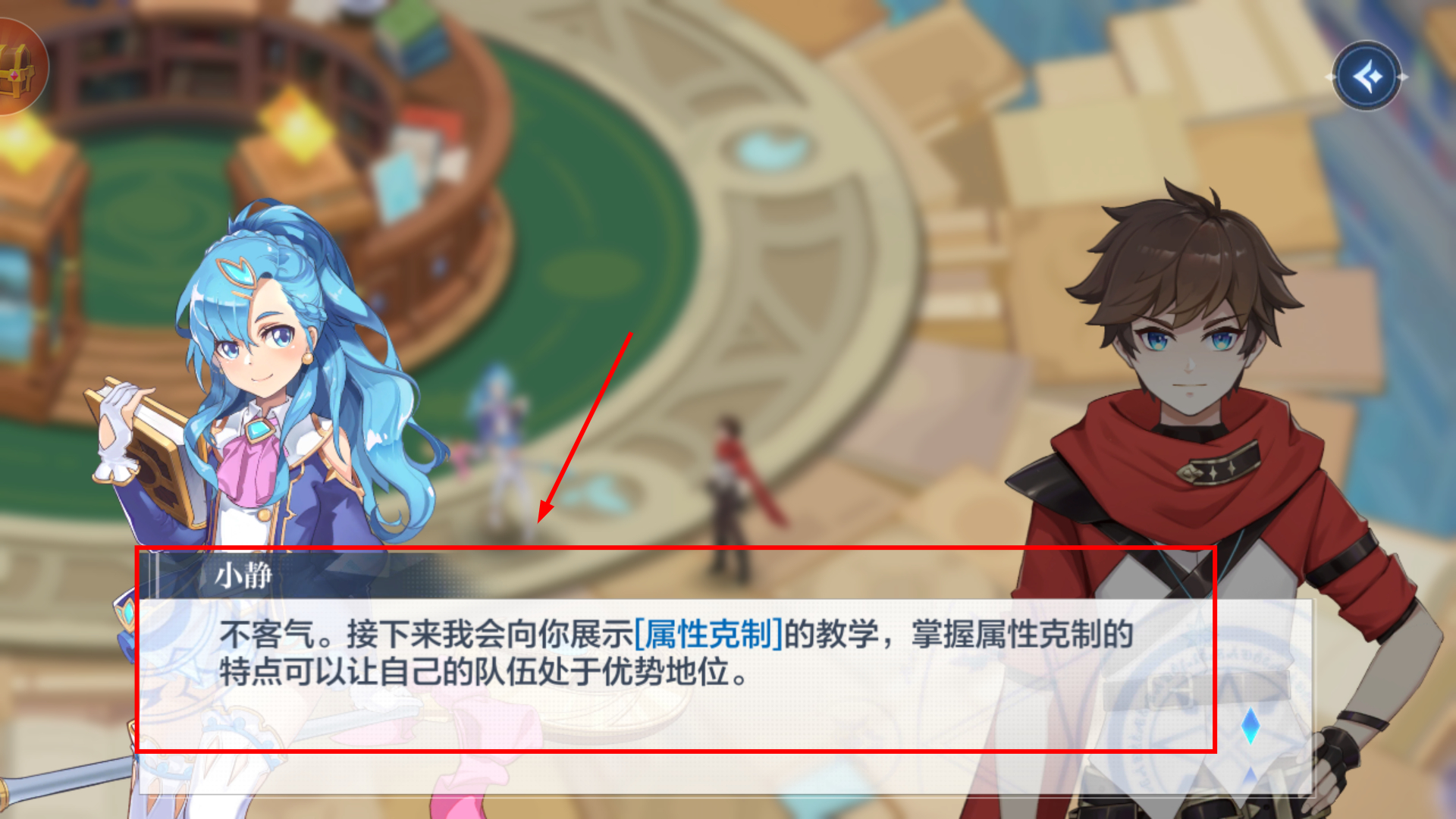 2、跟随【小静】学习【属性克制】特点,掌握后能让队伍在战斗中处于更有利的地位。