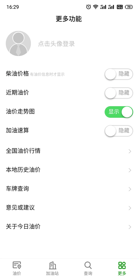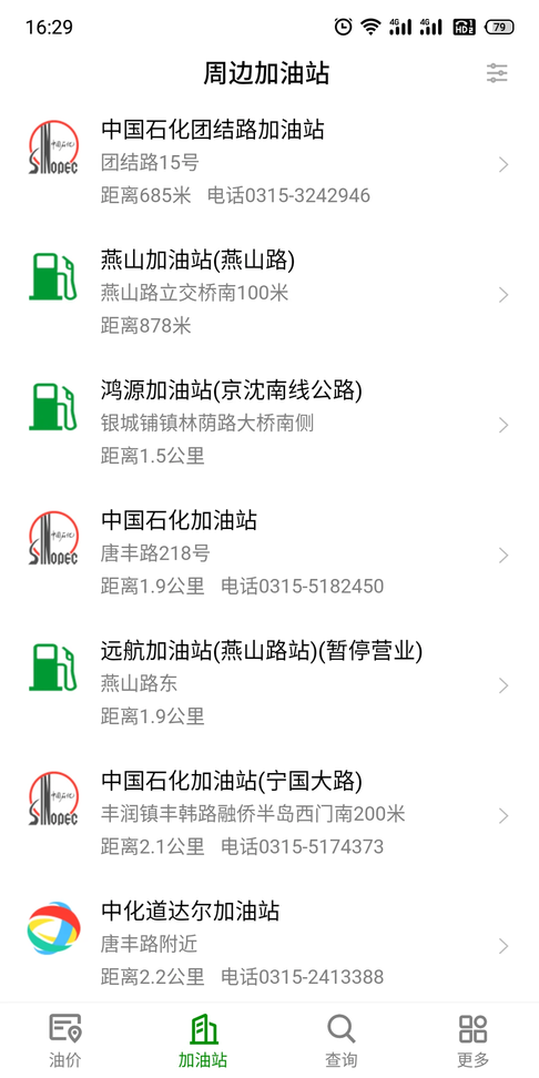 1、下载后开启定位权限,首页自动显示所在城市各标号油价,上滑查看附近3公里内低价加油站。