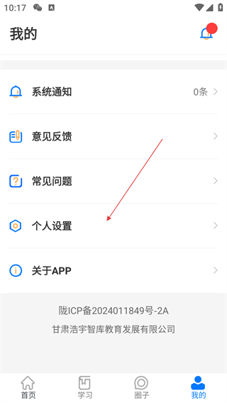 2、在个人中心页面,选择【个人设置】选项,进入个人信息页面。