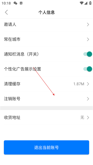 3、在个人信息页面,点击【注销账号】选项,弹出“您确认注销当前账号吗?”的确认弹窗。