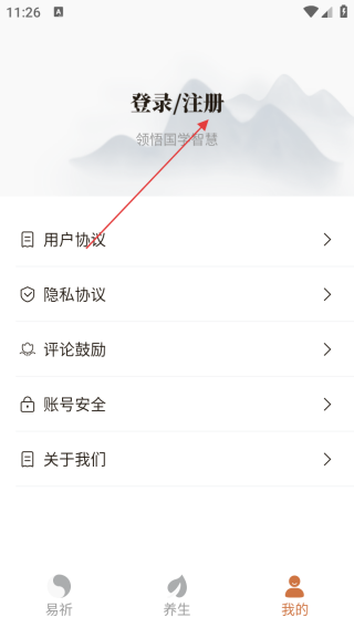 2、进入我的界面点击注册。