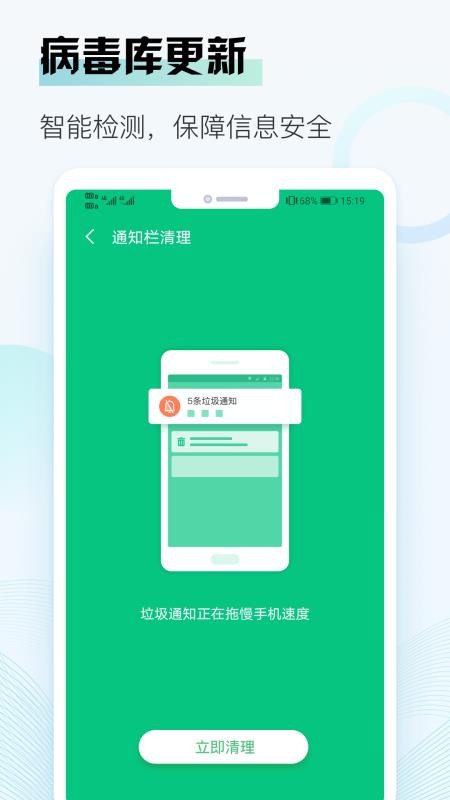 4、通知栏清理,对用户的手机通知栏进行快速清理,保持通知栏处于干净状态;