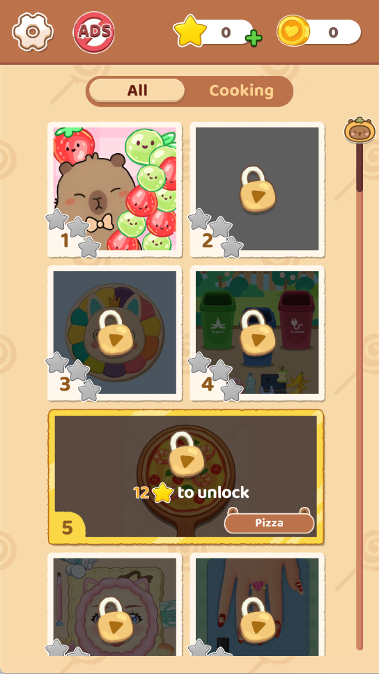 3、有着多样化整理挑战,从杂乱房间到复杂拼图,难度循序渐进,满足不同玩家的解压需求。