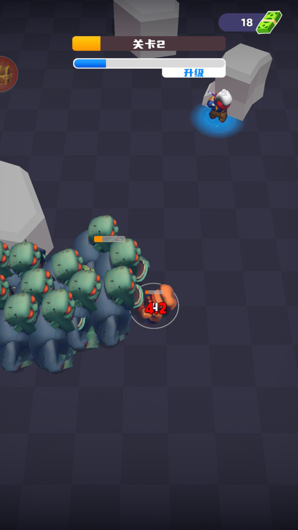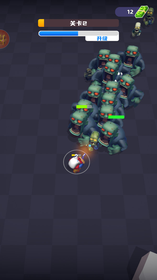 1、进入游戏后,你可以根据手指的指示去操控着小人与僵尸作战。