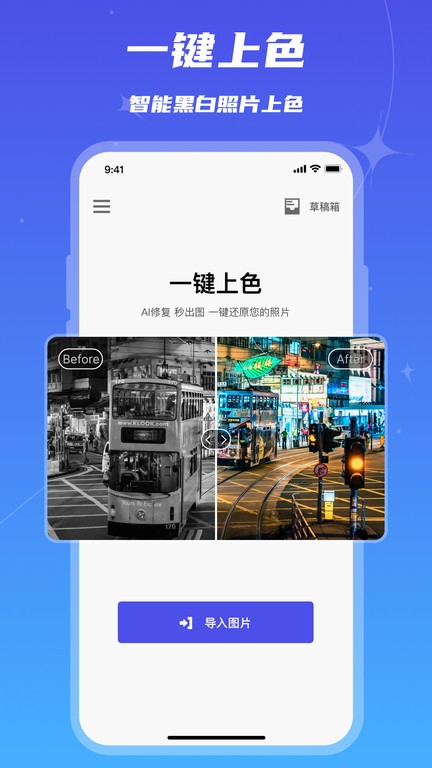 5.黑白老照片上色: 通过Ai对黑白老照片一键上色,还原符合场景的颜色。