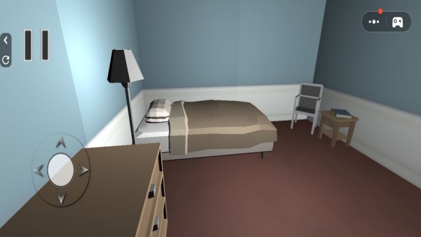1、以第一人称视角在昏暗的卧室与相邻房间内探索互动,检查门窗、电器以及任何可疑的物品。