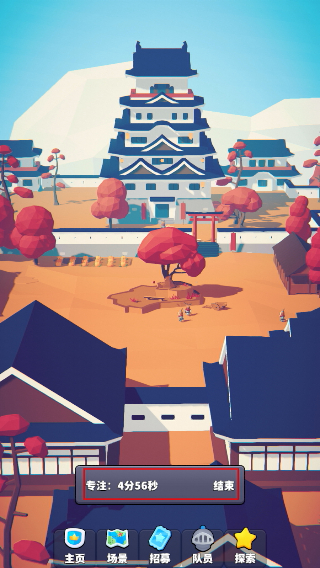 2、进入专注计时后,等待专注时间结束,或点击【结束】按钮终止专注进程,开启探索。