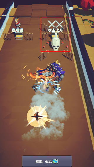 4、继续探索时,让小队触碰【攻击上升】道具,获取攻击增益以提升战斗能力,使通关更加轻松。