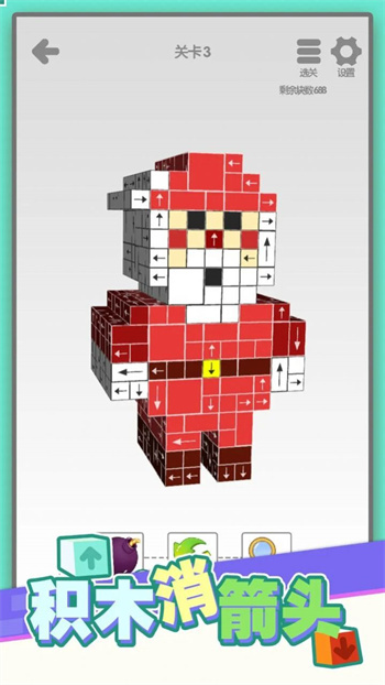 《积木消箭头》是一款创意十足的益智消除类游戏,玩家需要在色彩斑斓的积木世界中,通过策略性地移动和消除带有箭头的积木块,以达到指定的消除目标或解锁游戏关卡。游戏融合了经典的消除玩法与创新的箭头机制,为玩家带来前所未有的挑战与乐趣。