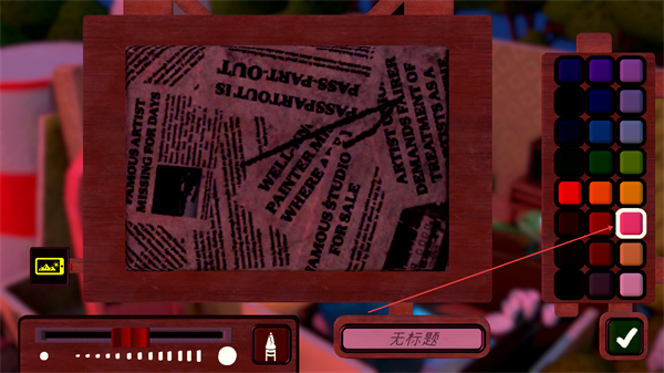 2、靠近画架后进入绘画界面,选择右侧调色板中的粉色颜料。