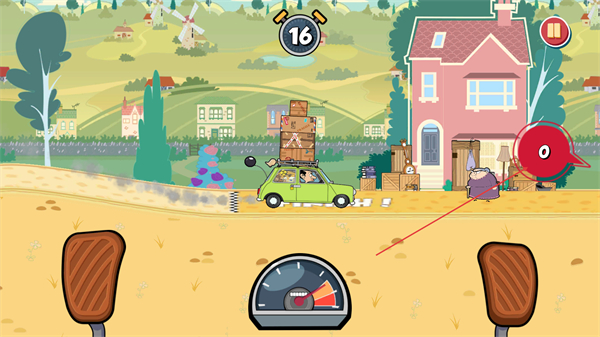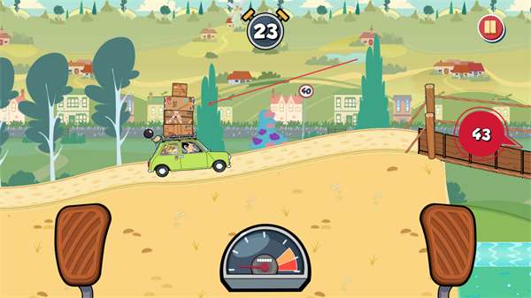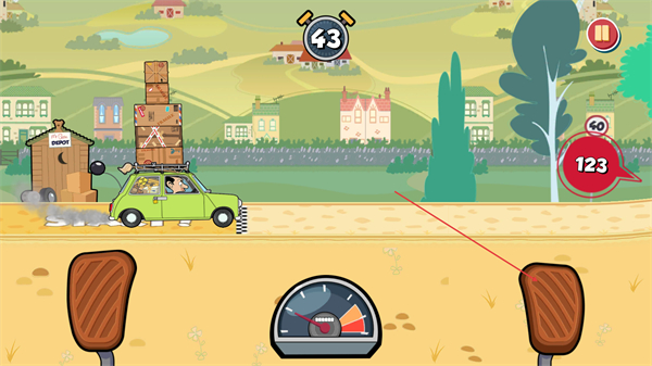 2、还原经典憨豆IP,角色造型、动作神态高度复刻原版形象,闯关过程中还会触发憨豆专属的搞笑剧情动画,比如翻车后的呆萌反应、送达后的搞怪庆祝,氛围感拉满。