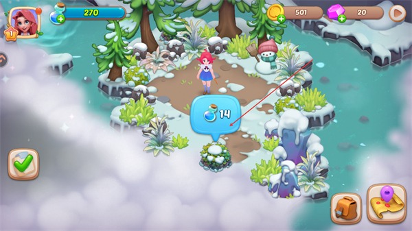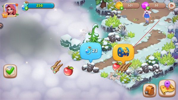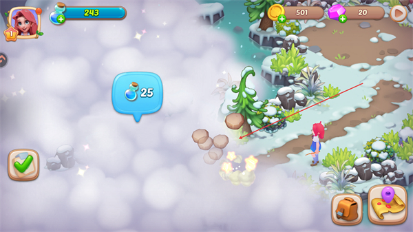 4、清理场景障碍,收集物品,提升道具数量,推进关卡流程。