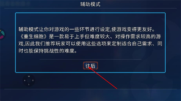 3、在辅助模式说明页面,点击往后,查看后续的辅助模式引导内容。