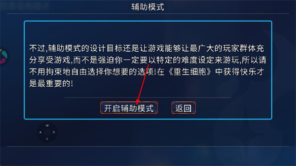 4、在辅助模式的后续页面,点击开启辅助模式,即可完成辅助模式的开启。