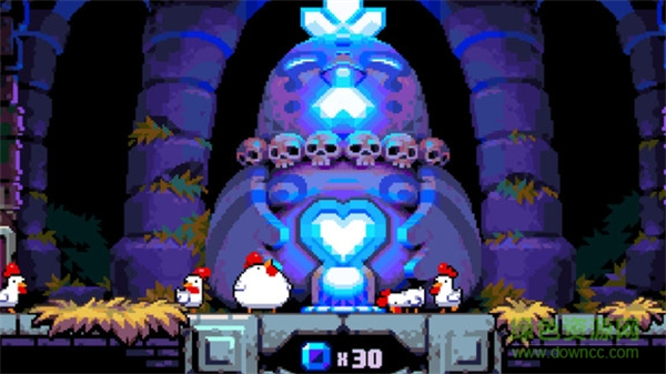 炸弹公鸡安卓最新版是一款非常有趣的小鸡冒险游戏,主角是一只因化学事故变异的公鸡,虽失去跳跃能力却拥有无限产出炸弹的神奇能力,每颗炸弹约3秒后自动引爆并可引发链式反应,成为冒险解谜的核心工具。