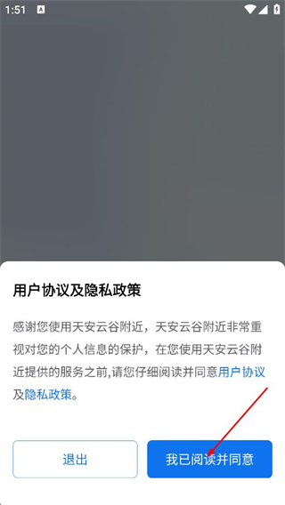 1、阅读用户协议及隐私政策后,点击我已阅读并同意按钮,进入登录页面。