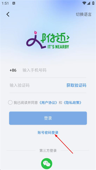 2、在登录页面,点击账号密码登录选项,切换至账号密码登录的操作界面。