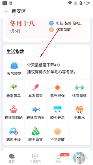 3、继续下滑可查看生活指数,获取贴合当日天气的生活参考。