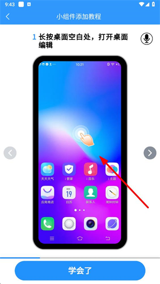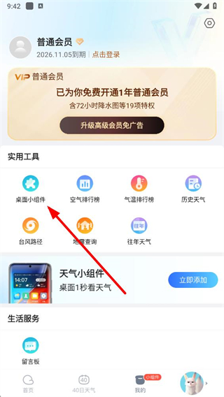 4、根据小组件添加教程,按照提示完成小组件添加操作,即可将天天天气设置在桌面上。