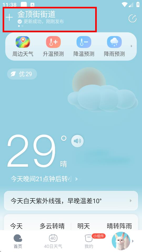 1、自动获取本地天气,在自动定位下能够自动获取本地的实时天气。