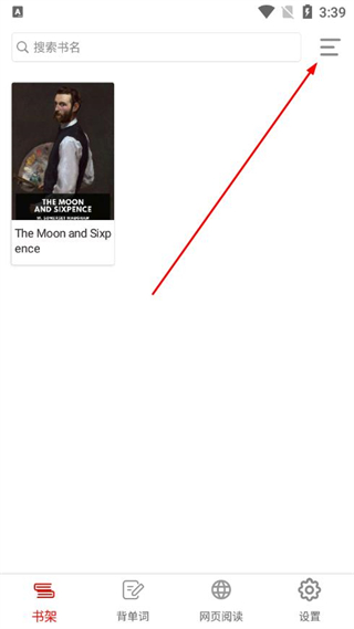 1、打开英阅阅读器的书架页面,点击右上角的三条横线菜单按钮,展开功能选项。
