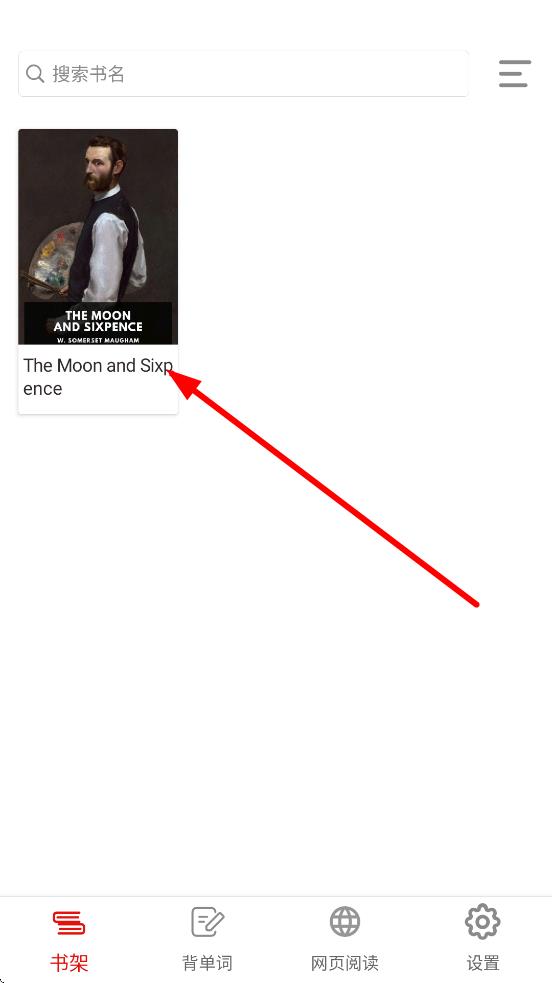 1、在书架页面,点击选择的书籍封面,进入书籍阅读页面。