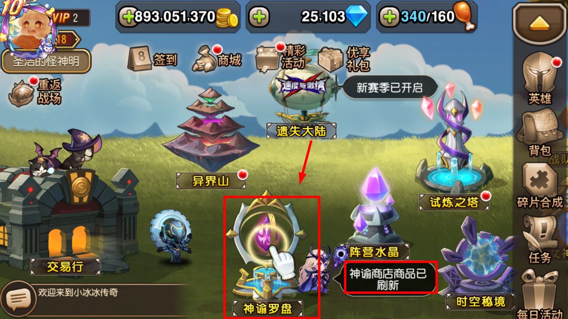 1、点击主界面的【神谕罗盘】进入神谕商店,查看已刷新的商品,提前准备好对应道具以便后续兑换心仪物品。