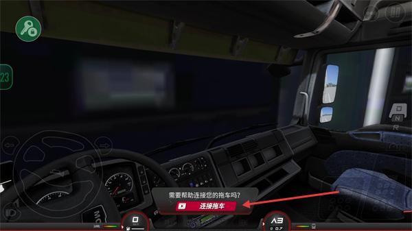 1、在驾驶界面点击【连接拖车】按钮,完成卡车与拖车的连接操作,准备运输货物。