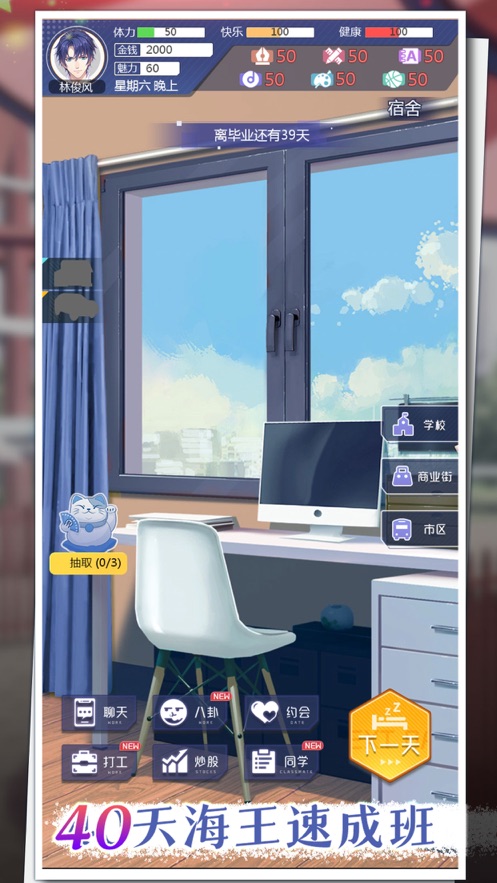 1、邂逅不同性格的女生,和女生聊天,约会,读书锻炼参加社团,轻松拿下好成绩;