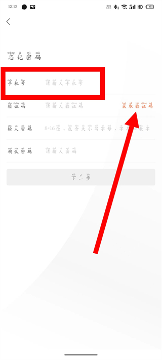 5、在忘记密码页面,输入手机号码,点击获取验证码。