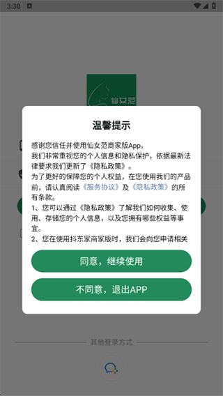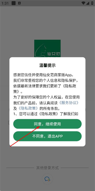 1、在用户协议隐私政策弹窗中点击同意按钮,进入登录页面。