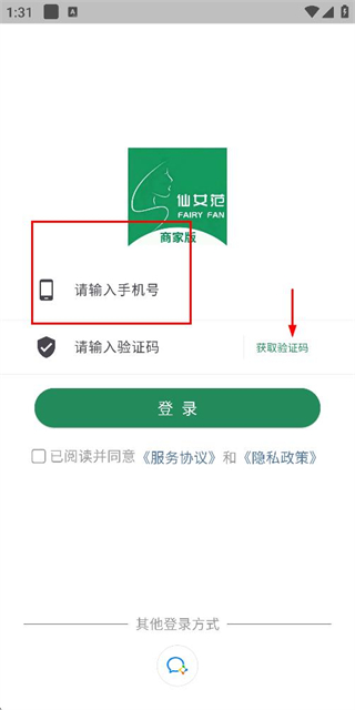 2、在登录页面填写手机号,勾选协议后,点击获取验证码。