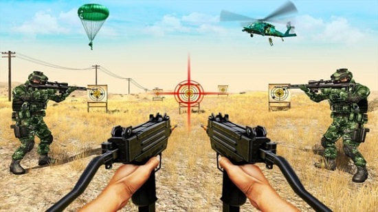 3、地上有坦克车,天上有轰炸机飞行,解锁更多的武器开始反恐射击