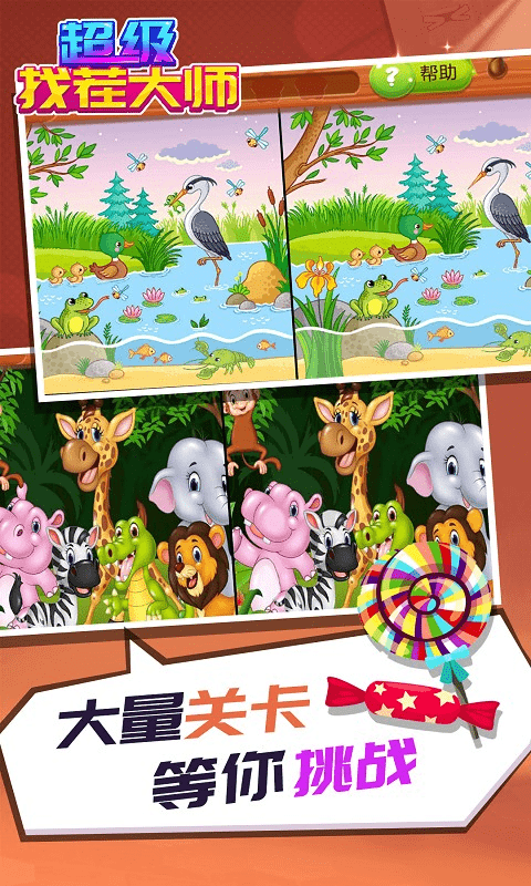 超级找茬大师手游是一款游戏画面采用卡通风格为为主的休闲闯关游戏超多游戏关卡,让你快速找不同,玩家将面对海量的图片考验,体验全新找不同游戏玩法乐趣,是一款十分考验玩家眼力的特色休闲闯关玩法手游。