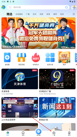 1、启动万视达App,进入时点击底部广播的按钮。