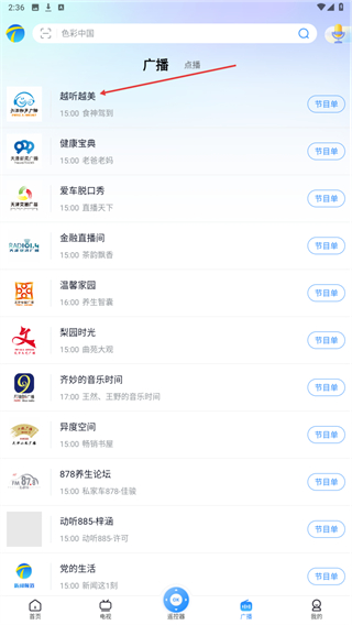 2、在广播的页面内,选择并点击要播放的广播名称。