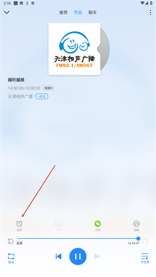 3、进入播放的页面内,点击左下定时的功能按钮。