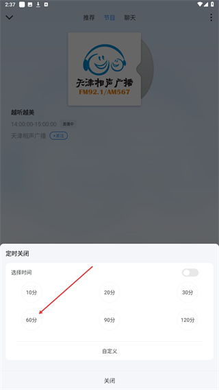 4、在下方弹出的定时页面内,点击60分钟的按钮即可。