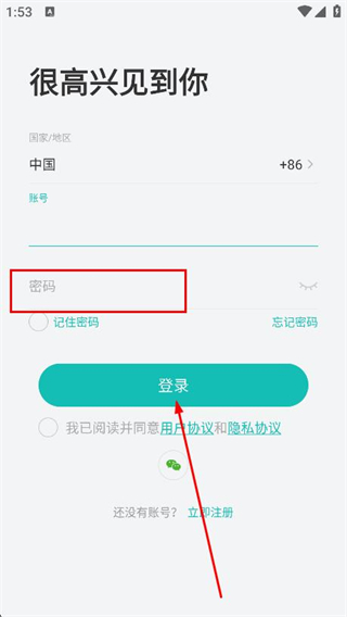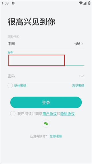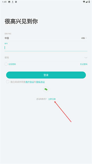 1、启动云际app,进入时点击底部立即注册的按钮。