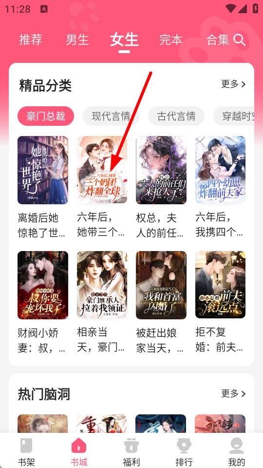 2、在书城页面,选择想要添加书签的小说,点击进入小说详情页。